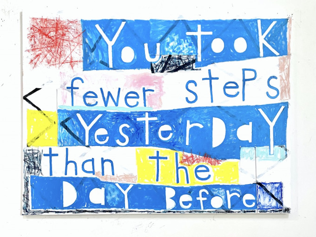 Known for his visual artistry, direction, and viral music, Nicholas Megalis brings a unique narrative to the exhibition through paintings that feature peculiar phrases. Megalis’s work champions embracing individuality, encouraging viewers to find universal meaning and acceptance in his art.