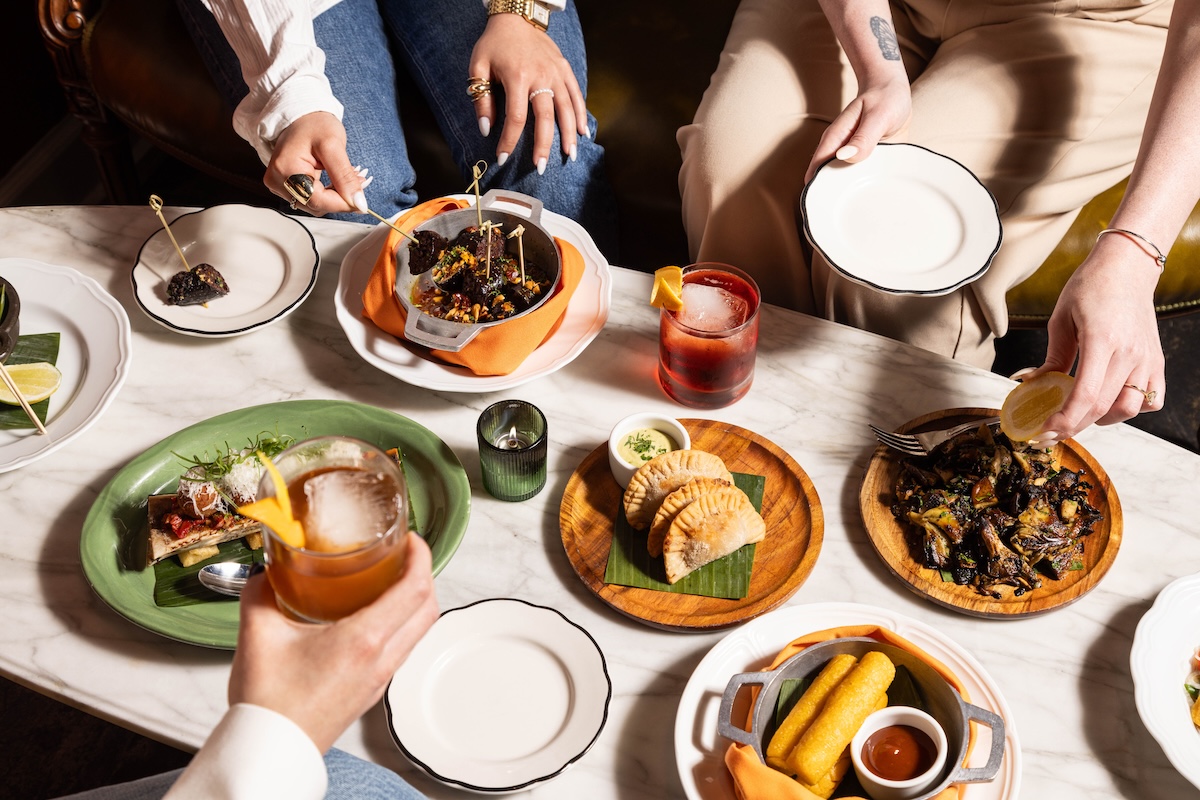 Chef Yun Fuentes’ Bolo in Rittenhouse Square offers a diverse menu, including ceviches, snacks, and skewers. Notable menu items include Tuna Con Coco, Chicken Pastelillos, and Gamba y Chorizo. The extensive cocktail selection includes drinks like Cafecito, Mosquito Bay, and Flamenco.