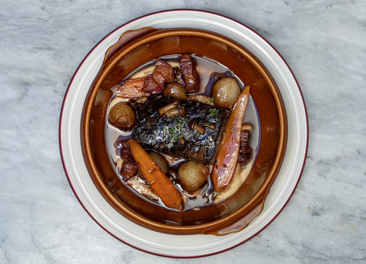 A highlight of the menu offerings is the Plat du Mois, a hyper-seasonal rotating “dish of the month.” Upcoming selections include dishes such as Blanquette de Veau in September, featuring tender veal shank with rice pilaf, carrots, celery, and mushrooms. In October, the Choucroute Garnie will comprise smoked sausage, braised bison, pork shoulder, and Gewürztraminer-braised sauerkraut. November brings Pot au Feu à la Royal, with braised short rib, poached foie gras, truffle, carrots, and turnips. December’s offering is Quenelle de Brochet, a delicate pike quenelle served with Sauce Nantua.