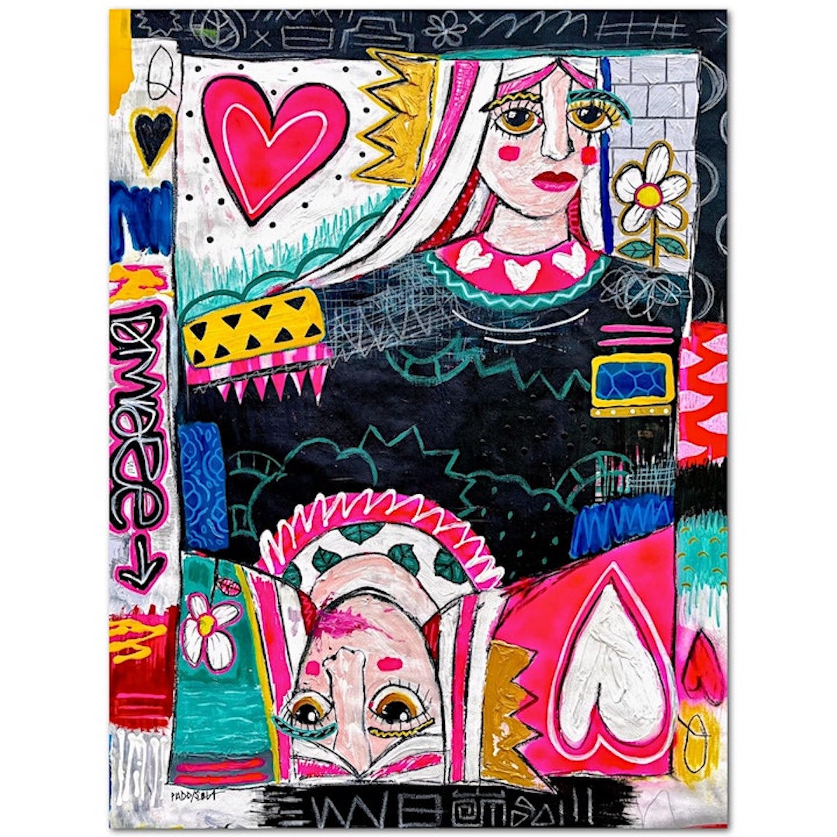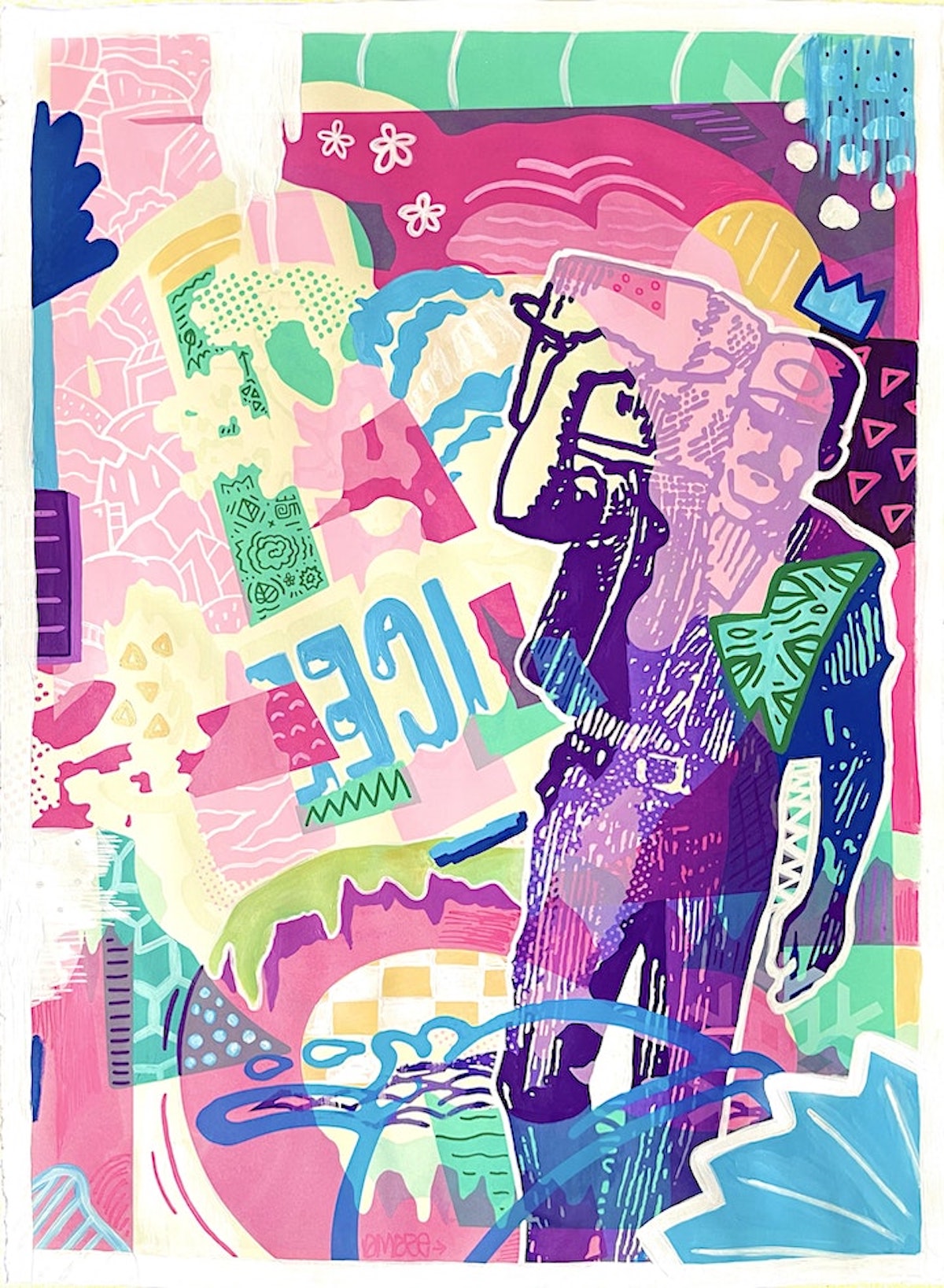 The Philadelphia-born artist has built a strong reputation with his signature style, blending street art, pop art, and comic book illustration into a mesmerizing display of colors and shapes. His murals and canvases breathe life into symbolic forms called “kudoglyphs,” which carry positive affirmations in a visual language. Mcilwaine’s artistic language effortlessly merges figuration and abstraction, resulting in energetic and playful masterpieces.