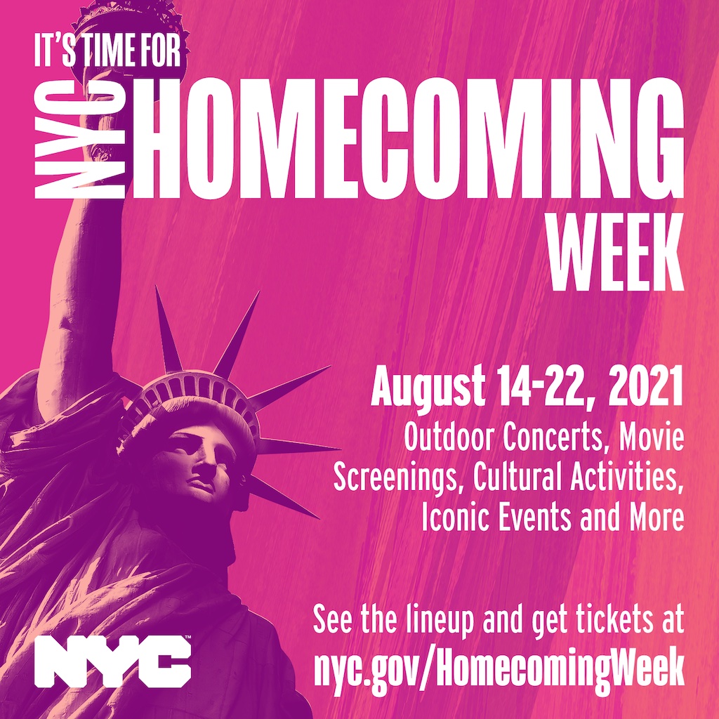 In addition to The Homecoming Concert, a citywide celebration from August 14 through August 22 includes live concerts, produced by the Universal Hip Hop Museum, in the Bronx, Staten Island, Brooklyn, and Queens; free movie screenings, NYC Restaurant Week and more.