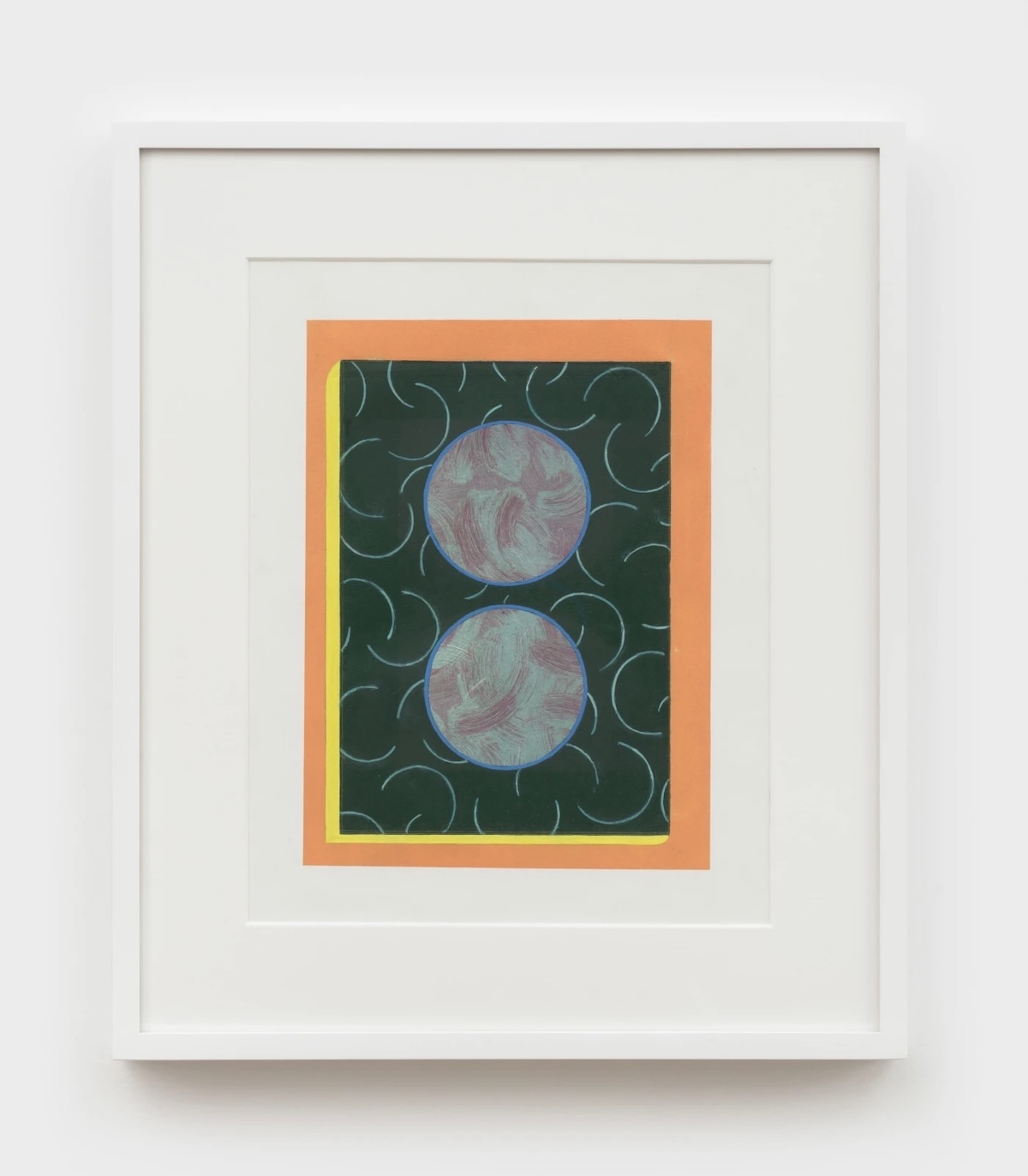 Right: “Untitled” (detail), 17 x 13.75 inches, casein on paper, framed, 2023