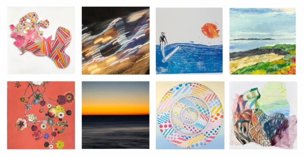 Returning gallery patrons will recognize Julie Goldstein’s playful and lively woodcuts depicting surf and sea imagery, Kaoru Mansour’s mixed media canvases celebrating the joy of nature in everyday life, and Jason Woodside’s vibrant colors, patterns, and fades inspired by textiles, light, and nature.