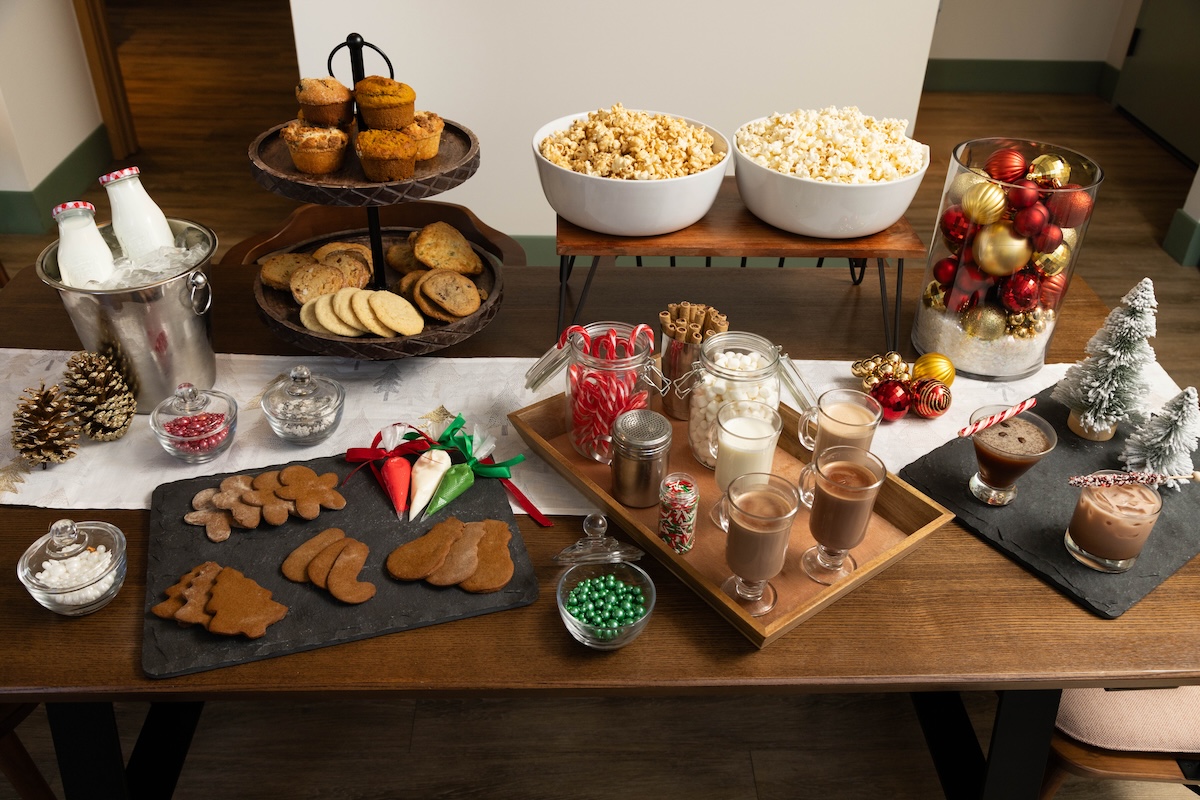 Add some excitement to your stay with the DIY cookie decorating option, allowing you to unleash your inner pastry chef while snacking on warm cookies. A welcome amenity from Patchwork includes cozy delights such as espresso martinis and gourmet popcorn. The suite even comes with a hot chocolate station.