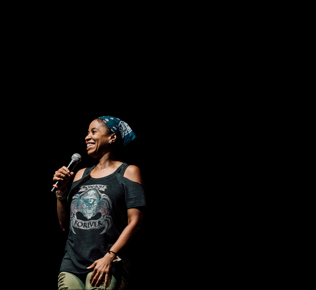 Though I couldn’t mull throughout the crowd and run up to the front of the stage to hear how laughter and applause would hit the comic on-stage (interaction being the true give-and-take pleasure of live comedy; how a joke lands or doesn’t land being of utmost importance to the artist), I did stand outside my car and listen to the crowd. People laughed, a lot, but it seemed to drift off into space. How the stand-up on stage received her or his gratification came when drivers honked their horns and flashed their lights.