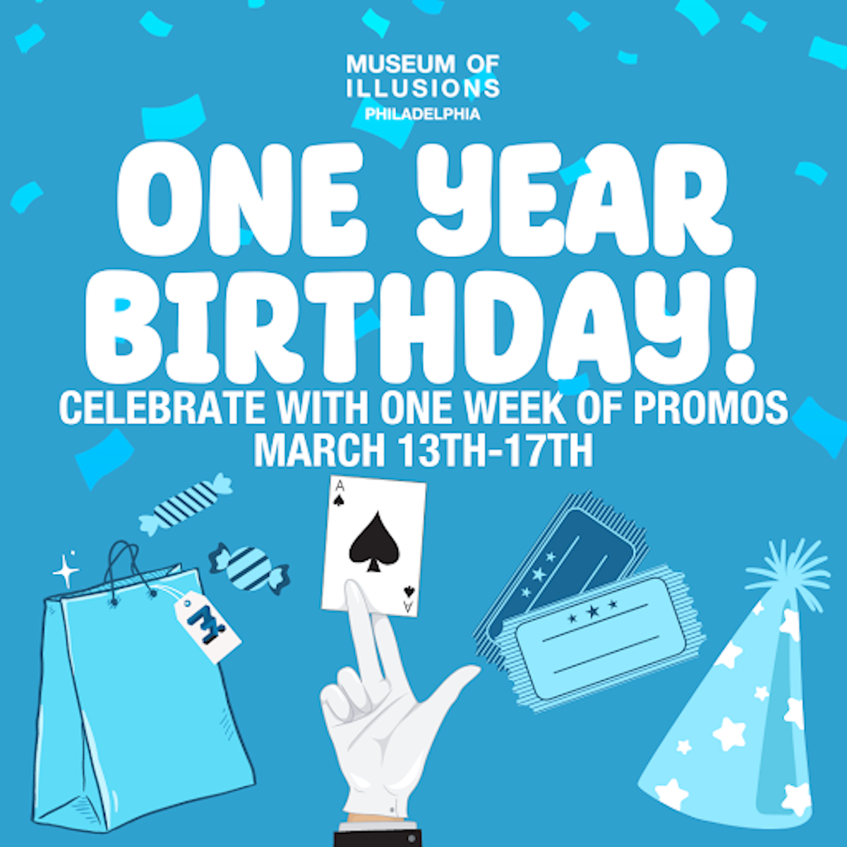 Celebrate the one-year anniversary of the Museum of Illusions in Philadelphia with a week-long birthday extravaganza that includes special promotions.