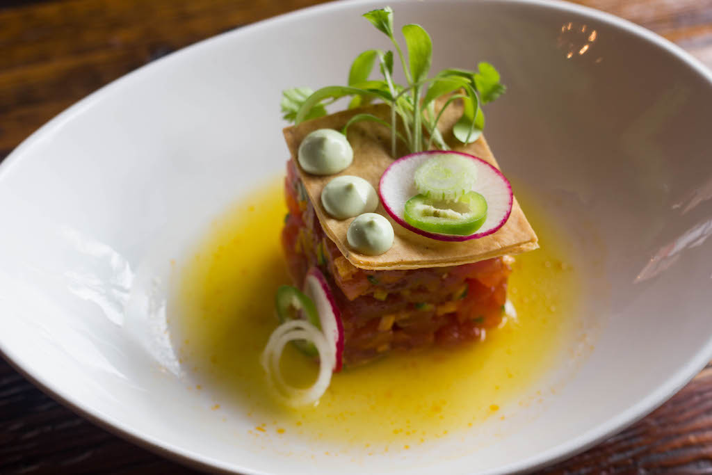 That means innovative Mexican small plates for 18 tables and 50 plus outdoor seats, with an additional six to eight tables and 35 seats coming soon to the inner courtyard of the Piazza. That means Pork Belly Tostada, Crispy Cauliflower Tacos, Duck Enchiladas, and Esquites washed down with Mescal and Blanco Tequilas of the highest grade.