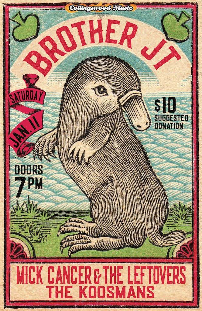 There’s no better opportunity, then, to open its 2020 concert slate – Saturday, January 11, at 7 pm – than to welcome Brother JT, Mick Cancer & the Leftovers and The Koosmans.