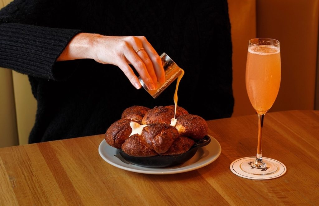 Brunch takes on a delightful charm on weekends with additions like Monkey Bread and a decadent Waffle topped with caramelized apples. Each dish pairs surprisingly well with its well-curated Mimosa Kits, offering the ideal reason to linger.