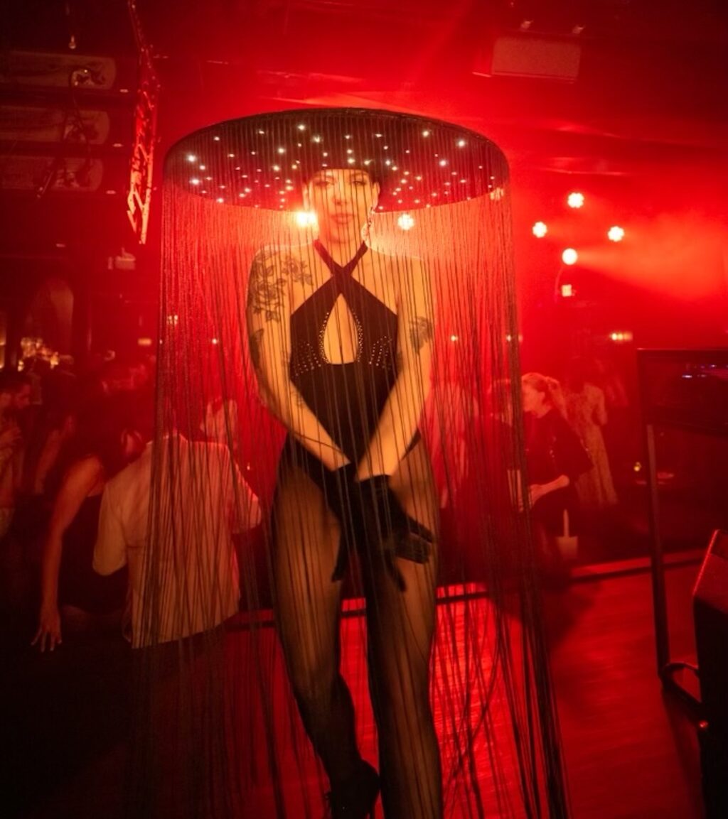 The Creative Director, Maggie Huth, collaborated with Otto Architects to create a unique space that marries classic Philadelphia architecture with modern embellishments. The venue’s exterior windows are adorned with four captivating LED murals designed by local artist David Guinn. These mesmerizing murals add a contemporary flair, setting the tone for the excitement that awaits inside.